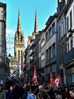 Revivez en images les manifestations contre le projet de réforme des retraites porté par le gouvernement d’Elisabeth Borne. Photos prises les mardi 31 janvier, mardi 7 février et samedi 11 février 2023 dans les rues de Brest et Quimper.